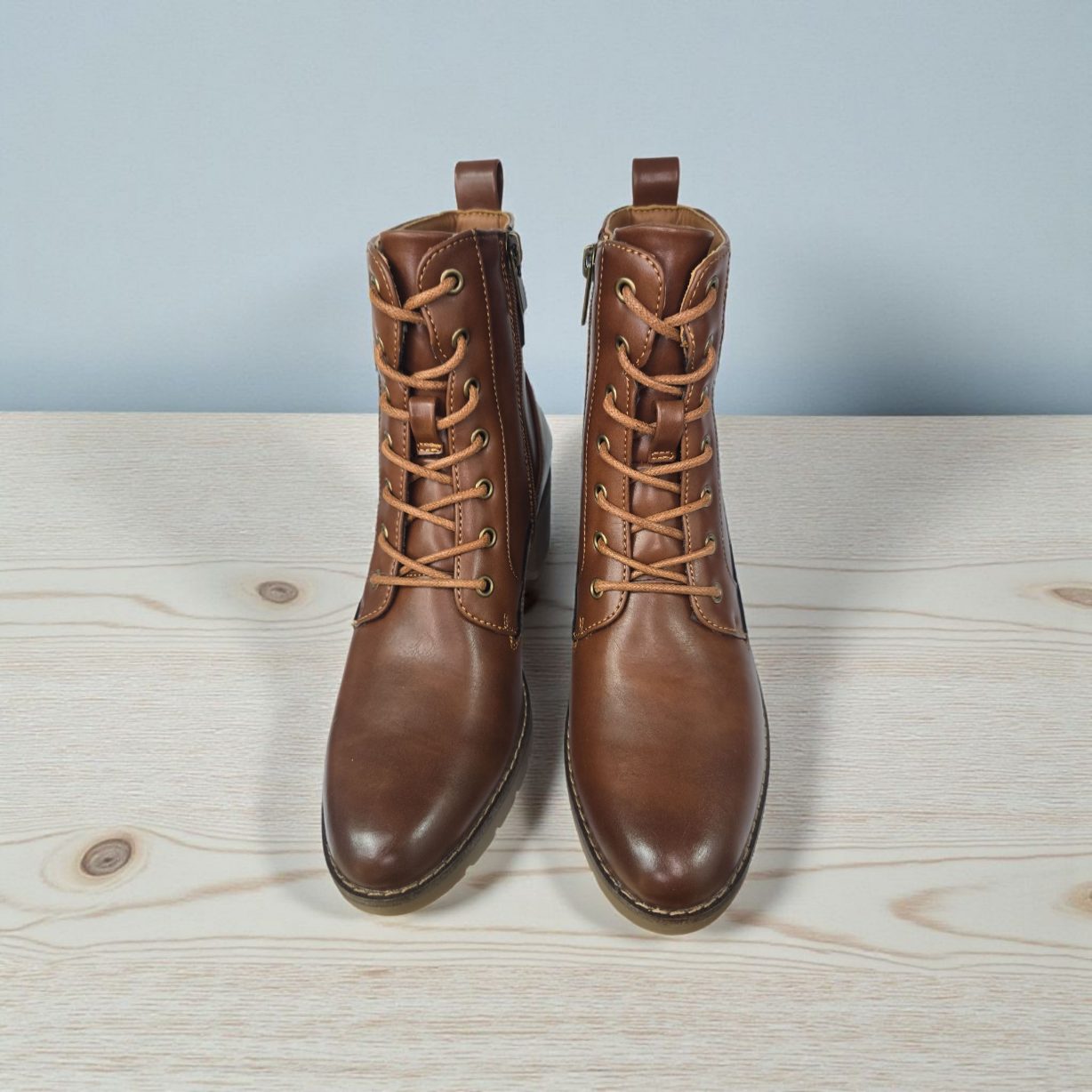 Botín realizado en polipiel, de tacón medio ,con cordones en el empeine y cremallera en la parte interna para poner y quitar con mayor facilidad.Uno de los modelos más demandados todos los inviernos.Tacon de aprox 6 cm y 2 por delante de goma dentada.Talla en su número. el 95% de nuestras clientas eligen su talla habitual de botín pero no lo recomiendan para pie ancho ya que tiene la puntera algo estrechita.