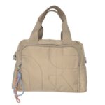 Bolso de nylon tamaño medio con bolsillo delante, bolsillo trasero con cremallera, ideal para llevar de mano y también con tira larga de nylon para llevar en bandolera.Adorno de cuerda.