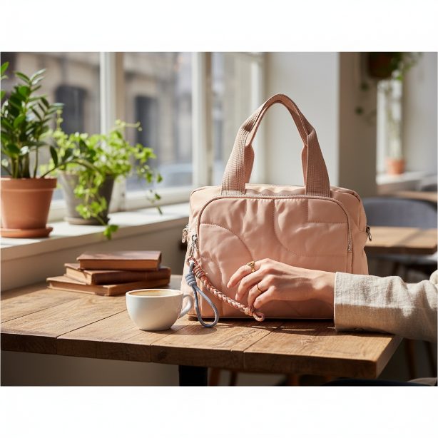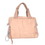 Bolso de nylon tamaño medio con bolsillo delante, bolsillo trasero con cremallera, ideal para llevar de mano y también con tira larga de nylon para llevar en bandolera.Adorno de cuerda.