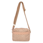Bandolera de tamaño medio realizada en polipiel, parte trasera lisa y la delantera calada .Limpieza fácil con un paño húmedo.Bolsillo con cremallera en la parte frontal y cremallera en la parte trasera. Cremallera interior también para las llaves.Asas de nylon regulable