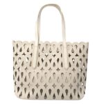 Fantástico bolso realizado en polipiel todo calado súper bonito . Lleva su cremallera para cerrar y en el interior lleva un neceser de tela tipo saco al tono beige forrado. smSe puede llevar con el neceser o sin él dejando ver a través del calado su interior.