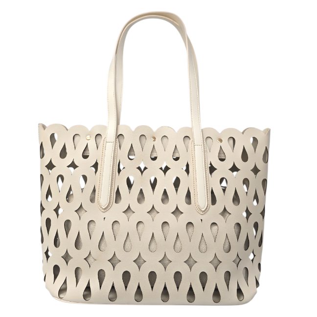 Fantástico bolso realizado en polipiel todo calado súper bonito . Lleva su cremallera para cerrar y en el interior lleva un neceser de tela tipo saco al tono beige forrado. smSe puede llevar con el neceser o sin él dejando ver a través del calado su interior.