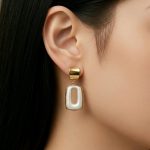 Precioso el pendiente Arnia bicolor,realizado en acero inoxidable y laminado en oro de 18 K es sencillo y con un brillo que supera su elegancia.Con un diseño colgante con pieza cuadrada nacarada en textura y contorno en oro brillo,combinalo con un look casual o con una prenda más chic para darle un toque diferente.