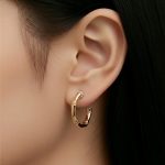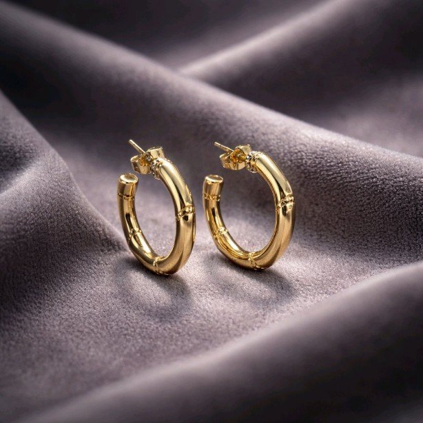 Realizado en acero inoxidable y laminado en oro de 18 K es sinónimo de elegancia y clase .Combinalo con un look casual o con una prenda más chic para darle un toque diferente.Es un pendiente que no pasa desapercibido.Medio aro macizo con muescas y pequeñas circonitas junto a la tuerca.Un complemento duradero con un brillo excepcional