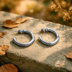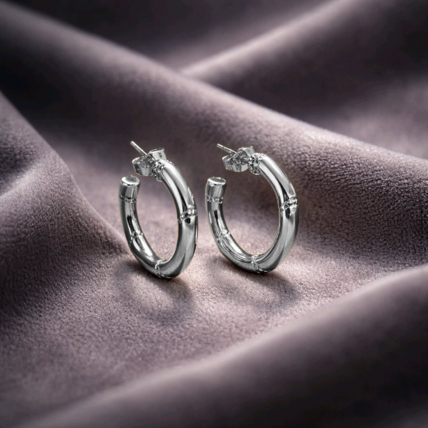 Realizado en acero inoxidable y laminado en oro blanco de 18 K es sinónimo de elegancia y clase .Combinalo con un look casual o con una prenda más chic para darle un toque diferente.Es un pendiente que no pasa desapercibido.Medio aro macizo con muescas y pequeñas circonitas junto a la tuerca.Un complemento duradero con un brillo excepcional