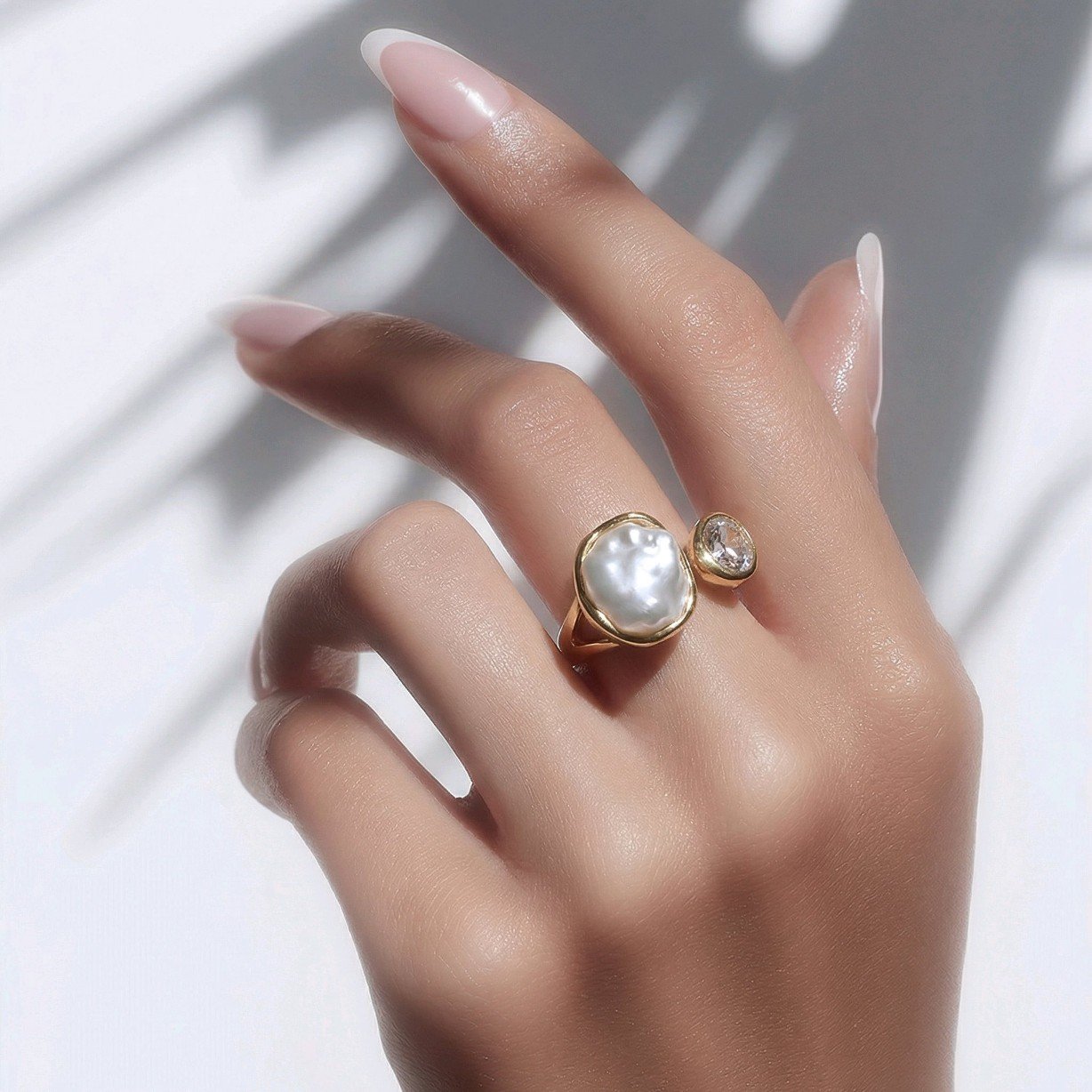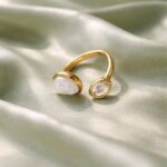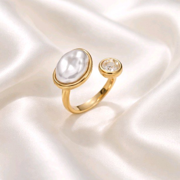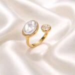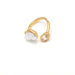 El anillo abierto Chipre está realizado en acero inoxidable es un complemento fino, sutil y delicado.La pieza lleva una asimétrica nacarada y otra más pequeña en piedra moisanita con un brillo espectacular.Una monada que queda bien con todo.Un complemento duradero con un brillo excepcional.