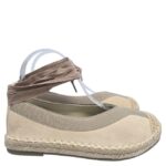 Espectacular esparto cerrada realizada en antelina con puntera reforzada en macramé en hilo . Elástico en color arena cosido en la pala y laterales dándole un aspecto juvenil . Costura de refuerzo en beig rematando todo el esparto. Plantilla de tela cómoda. Sujeción con cintas removibles en color arena, puedes llevarla con cintas o sin ellas. Altura 1,5 cm.