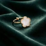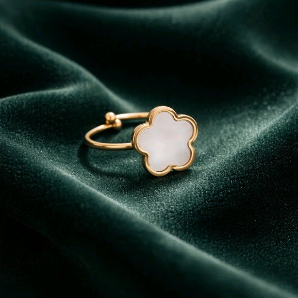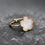 Precioso anillo regulable ,realizado en acero , la base de filamento fino con diseño de pieza nacarada central en forma de flor..Con un brillo excepcional completa cualquier look y cautiva las miradas.Una pieza preciosa y singular