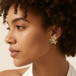 Realizado en acero inoxidable y laminado en oro de 18 K el pendiente Flora destaca por su brillo y labrado floral .Combinalo con un look casual o con una prenda más chic para darle un toque diferente.Es un pendiente que no pasa desapercibido.Tres flores con el centro de brillo deslumbrante. Un complemento duradero y versatil.