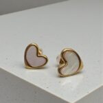 Realizado en acero inoxidable y laminado en oro de 18 K el pendiente Heart es desenfadado informal y juvenil.Centro nacarado que resalta su brillo.Combinalo con un look casual o con una prenda más chic para darle un toque diferente.
