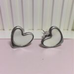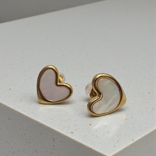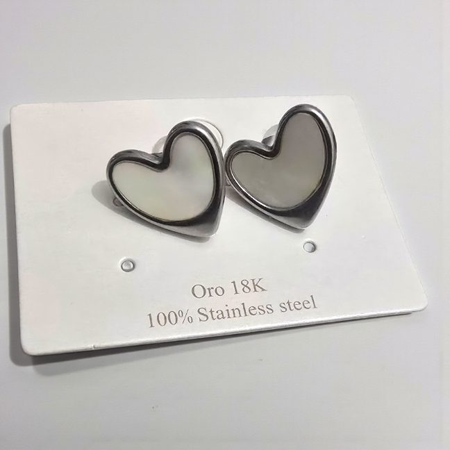 Realizado en acero inoxidable y laminado en oro blanco de 18 K el pendiente Heart es desenfadado informal y juvenil.Centro nacarado que resalta su brillo.Combinalo con un look casual o con una prenda más chic para darle un toque diferente.