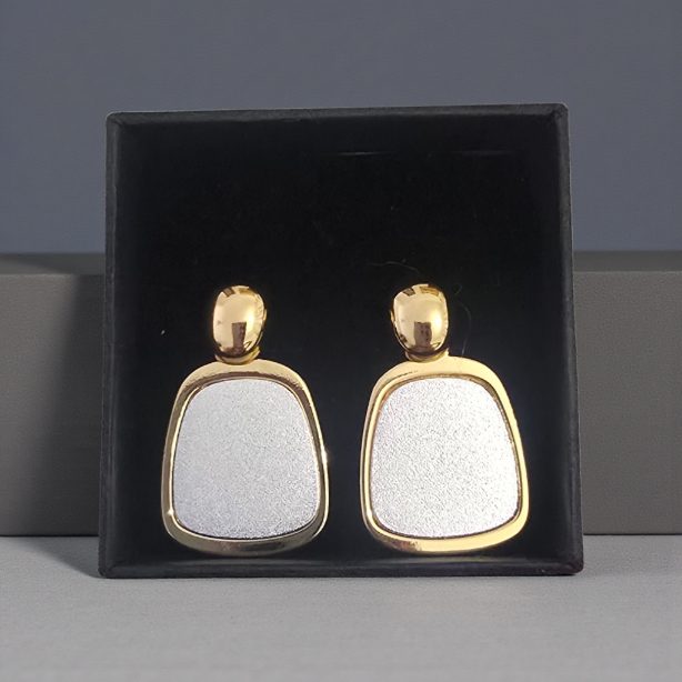 Precioso el pendiente Laida bicolor,realizado en acero inoxidable y laminado en oro de 18 K es sencillo y con un brillo que supera su elegancia.Destaca por su sencillez .Con un diseño colgante de centro plateado con textura y contorno en oro brillo,combinalo con un look casual o con una prenda más chic para darle un toque diferente.