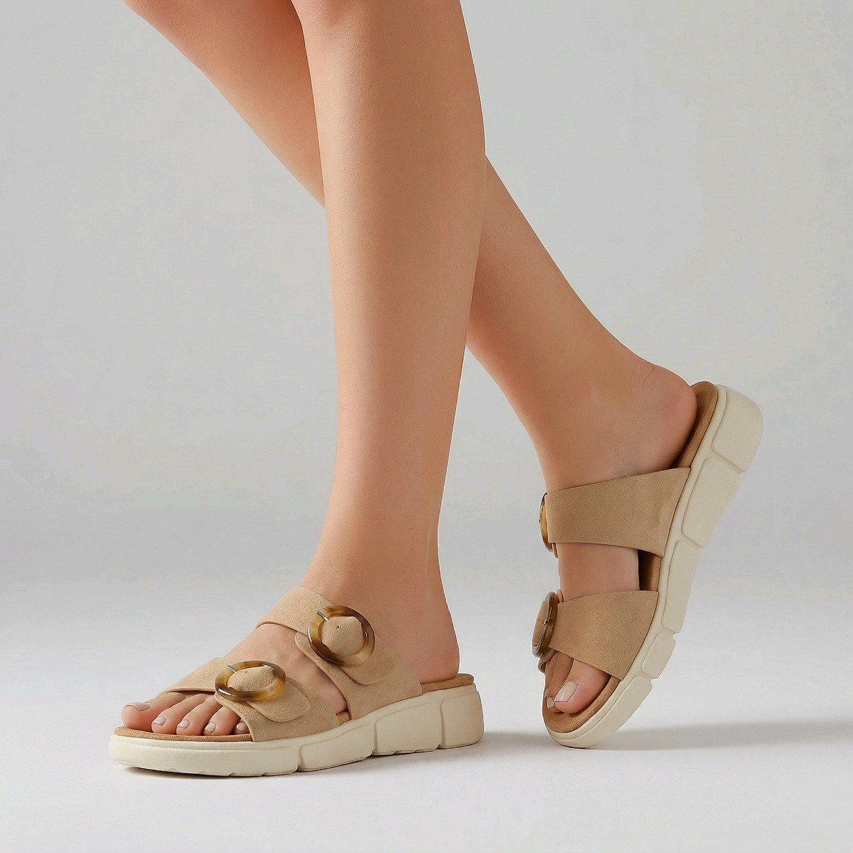 Zueco cómodo realizado en polipiel con dos tiras con hebilla redonda tipo carey,ajustable.Planta cómoda.Muy ligera!!