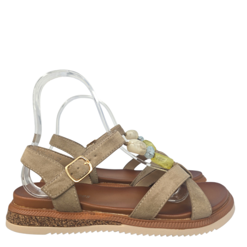 Sandalia comodona de señora realizada en polipiel superligera con planta muy cómoda y tiras cruzadas.Las tiras imitando a rafia sintéticas son elásticas para un ajuste perfecto.TALLA JUSTA