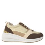 Deportivo de cuña combinado en textil haciendo un patron de cuadrito con brillo y detalles de antelina. Combinacion de colores top. Plantilla extraible. Altura aprox . 5 cm .Si tienes dudas con la talla , mándanos el número habitual que uses y lo que mide tu plantilla por watsap al 614449463 y te ayudaremos