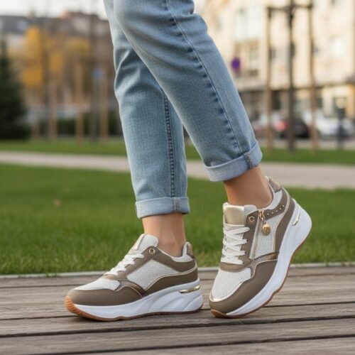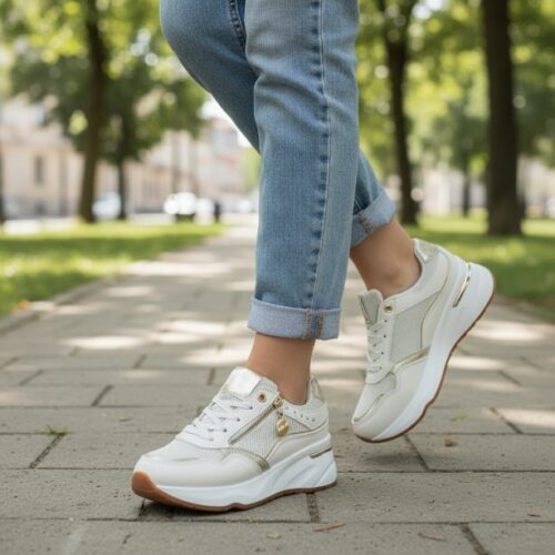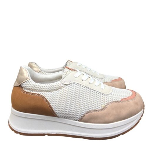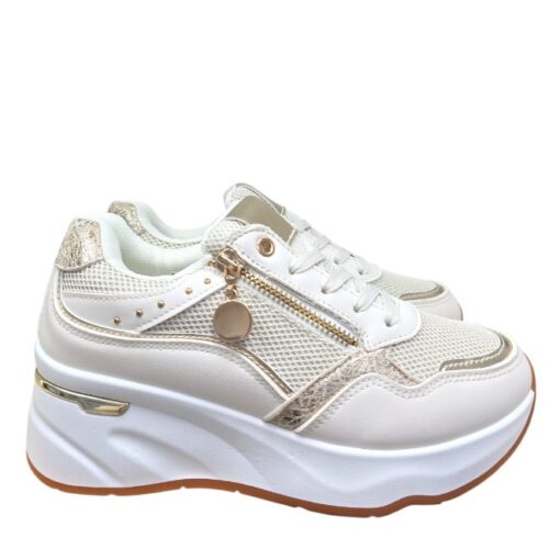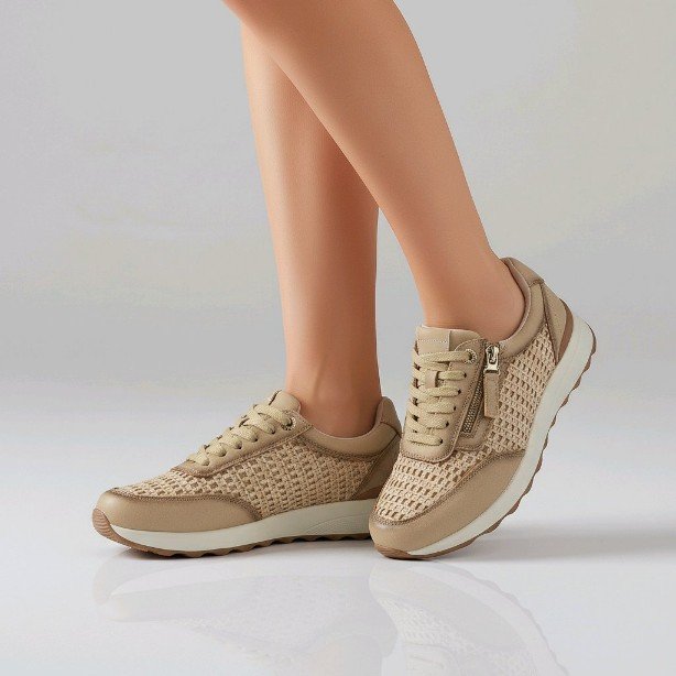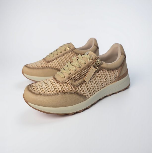 Precioso deportivo calidad superior realizado en polipiel y tejido efecto rafia sintética, interior blandito con forro textil ,plantilla extraíble de gel y cremallera funcional.Altura 3 cm