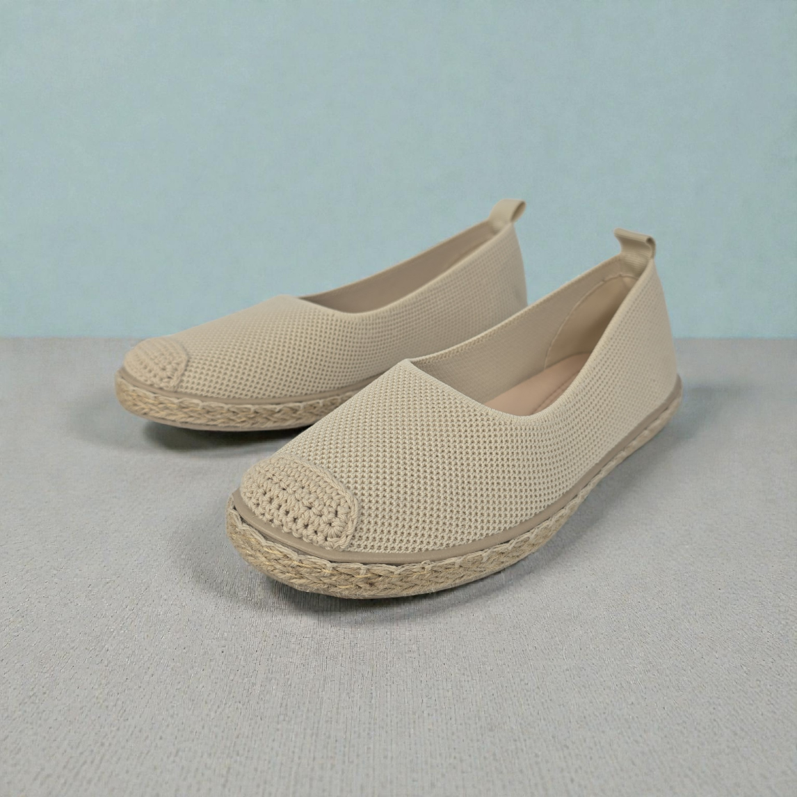 Mocasin flex comodisimo realizado eb textil efecto rejilla.Plantilla cómoda y suela de goma.Detalle de crochet reforzando la puntera.Altura suela: 1,5 cm