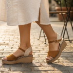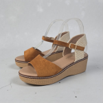 Sandalia en plataforma con la cuña de poliuretano ,no pesa nada! Planta de gel ,tira de antelina en la parte delantera pulsera al tobillo y trasera de saco Altura cuña: 6,5 cm – Altura plataforma: 3 cm