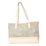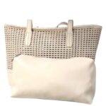 Precioso bolso realizado en polipiel trenzada completamente calado y diáfano en su interior.Tacos metálicos en la base.