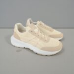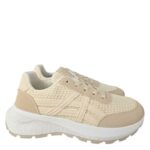 Deportivo sport realizado en textil efecto malla y combinado con piezas de antelina beig . Líneas laterales que le dan un aspecto más .Plantilla extraible.Altura aprox 4 cm .Ideal para leggins o jeans , con sudaderas o chaquetas deportivas.