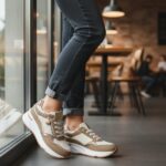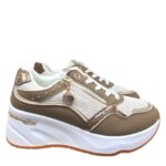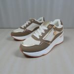 Deportivo combinado en polipiel y textil con brillito dorado. Cremallera funcional en dorada para mayor comodidad. Plantilla extraible.