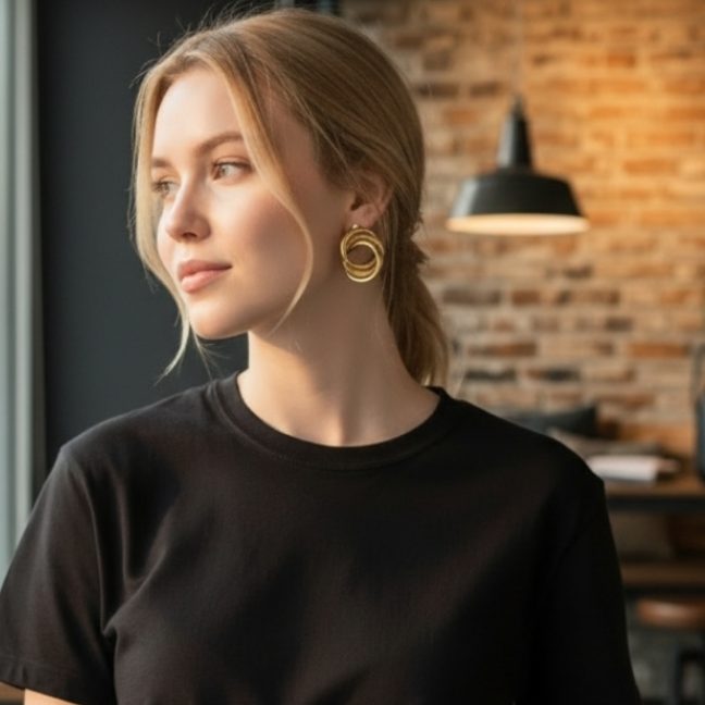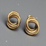 Realizado en acero inoxidable el pendiente Marea es una joya sobria y elegante.Su diseño de tres circulos entrelazados, dos oro brillo y uno central en oro texturizado, lo hacen especial.Un remolino dorado que cautivará todas las miradas