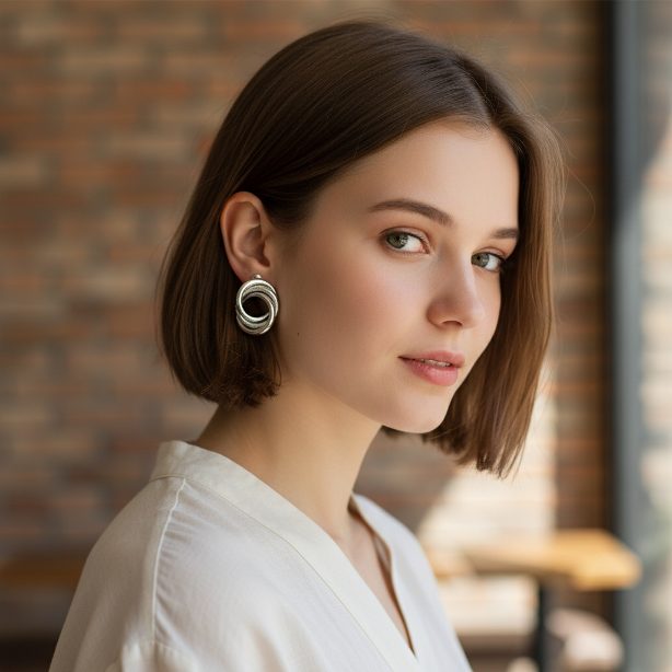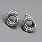 Realizado en acero inoxidable el pendiente Marea es una joya sobria y elegante.Su diseño de tres circulos entrelazados, dos oro brillo y uno central en oro texturizado, lo hacen especial.Un remolino plateado que cautivará todas las miradas