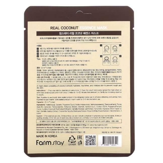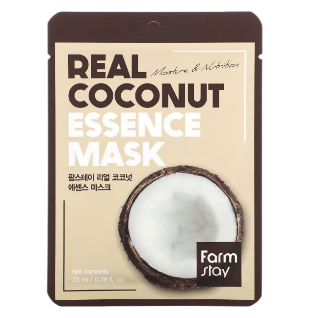 La mascarilla facial Coconut Essence Mask de la marca coreana FarmStay está diseñada para nutrir, hidratar y suavizar la epidermis.