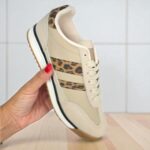 Deportivo combinado en antelina y cuerpo en tela con lineas laterales en polipiel. Combinación top con animal print. Cordón beige al tono. Altura aprox 2,5 cm . Según las valoraciones , el 90% de nuestras clientas que dudan entre dos numeros eligen el mayor.