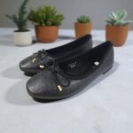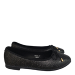 Manoletina realizada en polipeil efecto detalle de brillo plata, con el clásico lazo de goma en la pala con terminaciones doradas. Plantilla acolchada , muy cómoda. Talla en su número.EN LIQUIDACION,ARTICULO SIN CAMBIO NI DEVOLUCION