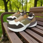 Precioso deportivo en polipeil y antelina con gama de tonos verde, kaki, arena y marrón. Pala en textil blanco .Muy buenos acabados. Piso gordo.Altura aproximada 4 cm . Como en casi todas las deportivas( que van con calcetin) si estás entre dos numeros, elige el mayor calza pelín justa.EN LIQUIDACION,ARTICULO SIN CAMBIO NI DEVOLUCION