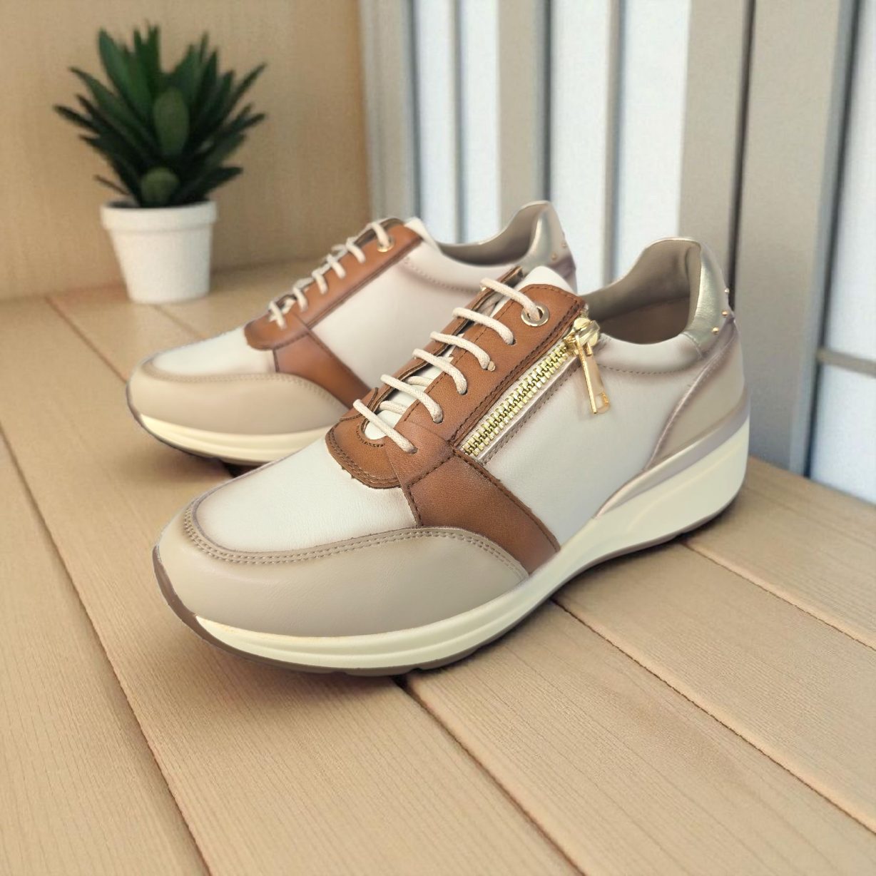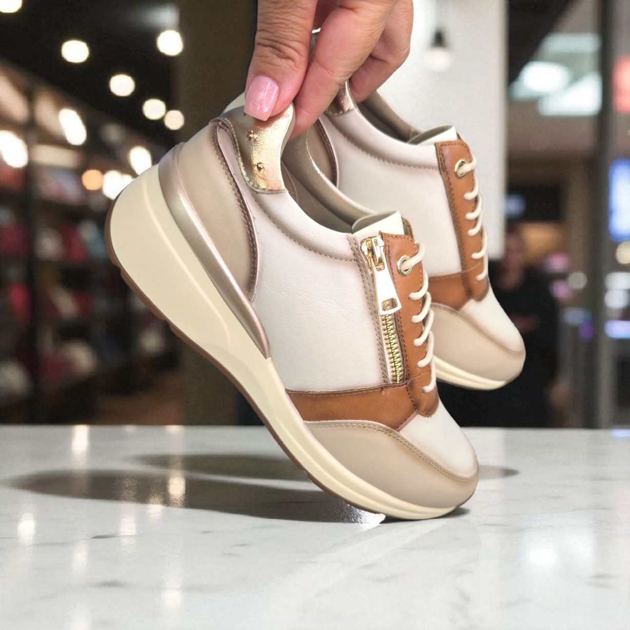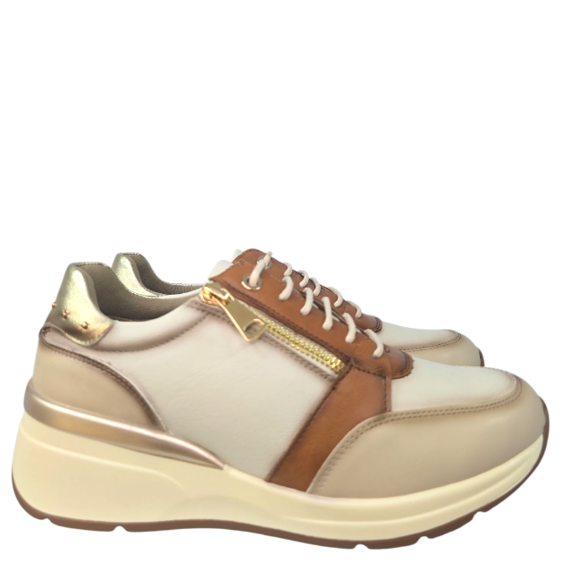 Deportivo casual confort,  máxima calidad. Realizado en polipiel en tonos combinados. Cordón fino redondo y cremallera dorada en el lateral para mayor comodidad.Plantilla confortable extraible. Altura aproximada 5 cm .Según el 95% de las clientas este modelo talla  en su número.