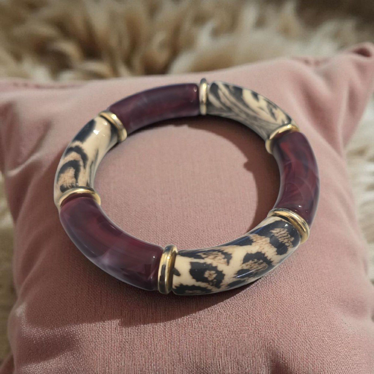 Pulsera elástica , adaptable con piezas en burdeos efecto mármol y combinación con animal print. Supertendencia