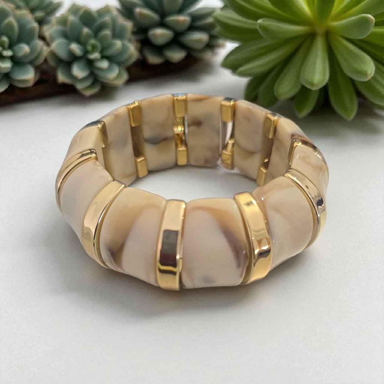 Pulsera tendencia Zara elástica con piezas plásticas efecto nacarado y oro.Adaptable