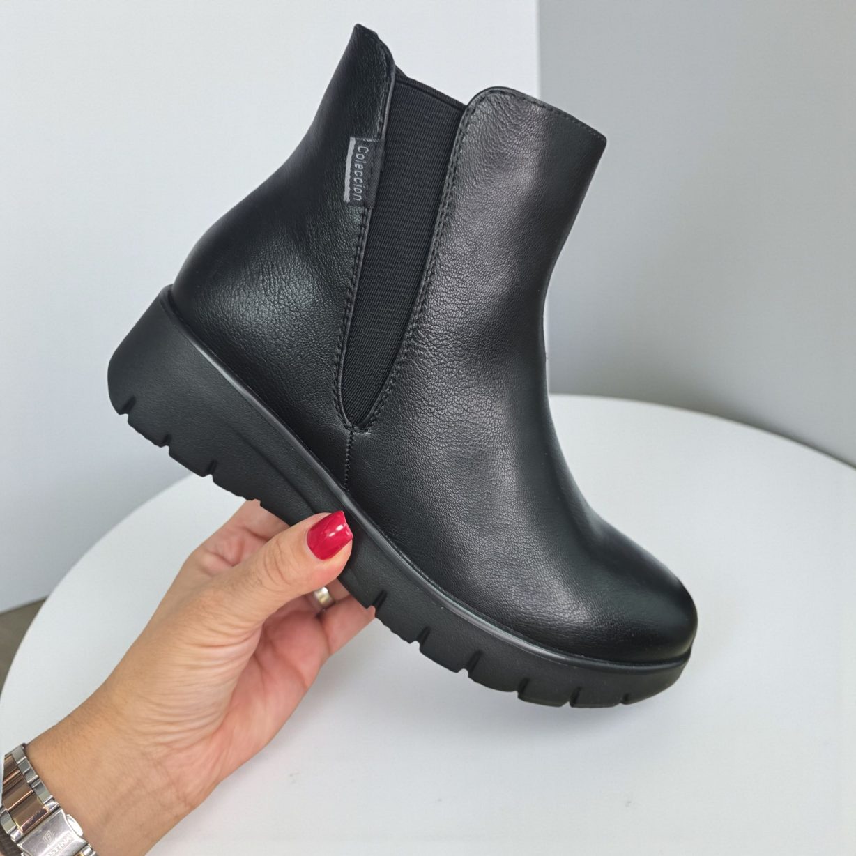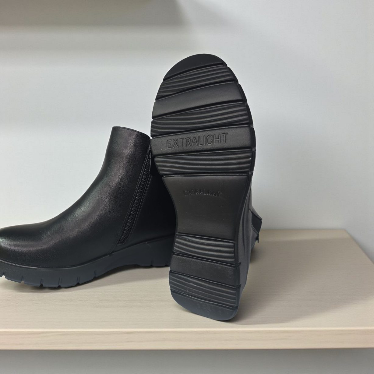 Botín de cuña realizado en polipiel efecto cuero calidad premium, cómoda y confortable.Plantilla cómoda y extraible. Cremallera en la parte interior y elástico en el lateral. y suela extralight que no pesa nada, para mayor ligereza. Un acierto seguro. Altura de la cuña aprox 4 cm y 2 cm de suela delantera. Altura de la caña  aprox 14 cm . Talla en su número . El 95% de nuestras clientas eligen su número habitual