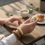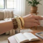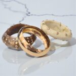 Trío de pulseras zra,realizadas en resina con tachuelas doradas, asimétricas,ocre y nacarada y lisa en metal dorado.Llevalas juntas o separadas según tu preferencia para tus looks y eventos más top.