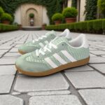 Precioso deportivo combinado en antelina y tejido tipo rafia sintética con rayas lterales en polipiel. Piso de goma oscura de 2,5 cm