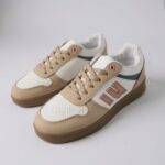 Deportiva casual realizada en polipiel blanca y beig arena, puntera efecto calado y polipiel lisa con adorno de letra en el lateral. Detalle en camel y rosa en el talón y letra rosa. Pincelada de azul.Combinacion ideal.Puntera redonda. Suela de goma oscura de aprox 3 cm de altura. Plantilla extraible. Ideal para esta primavera.