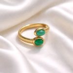 Realizado en acero el anillo Natasha es una pieza que destaca con los looks más veraniegos, con sus piezas en dos tonos de verde .Anillo abierto con el cuerpo liso en la parte oculta y texturizada en la visible. Para cualquier ocasión que completa un look haciéndolo más sofisticado.