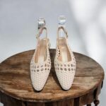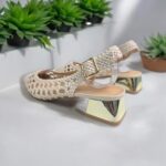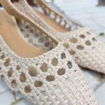 Zapato en polipiel tejida efecto rejilla con puntera redondeada y un ancho asequible. Traemos este modelo porque no es excesivamente picudo y se adapata a casi todos los pies. Tacón cuadrado en espejo dorado. Sujeción al talón con hebilla , bonito, elegante, atemporal para todos los looks, más casual con vaquero, arreglado con vestido Altura: aprox 4 cm