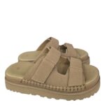Zueco piso block superjuvenil , en antelina con dos tiras regulables con velcro en la pala .Planta textil gel confort. Altura 4 cm , superligera.